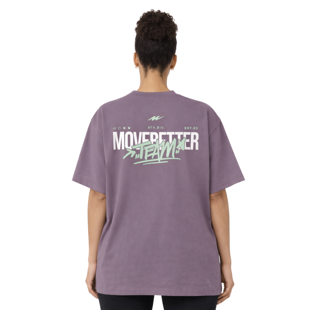 The Move Better Team Tee is built for performance and identity, combining a bold graphic with an oversized streetwear fit that keeps you moving through every workout, lift, and competition.